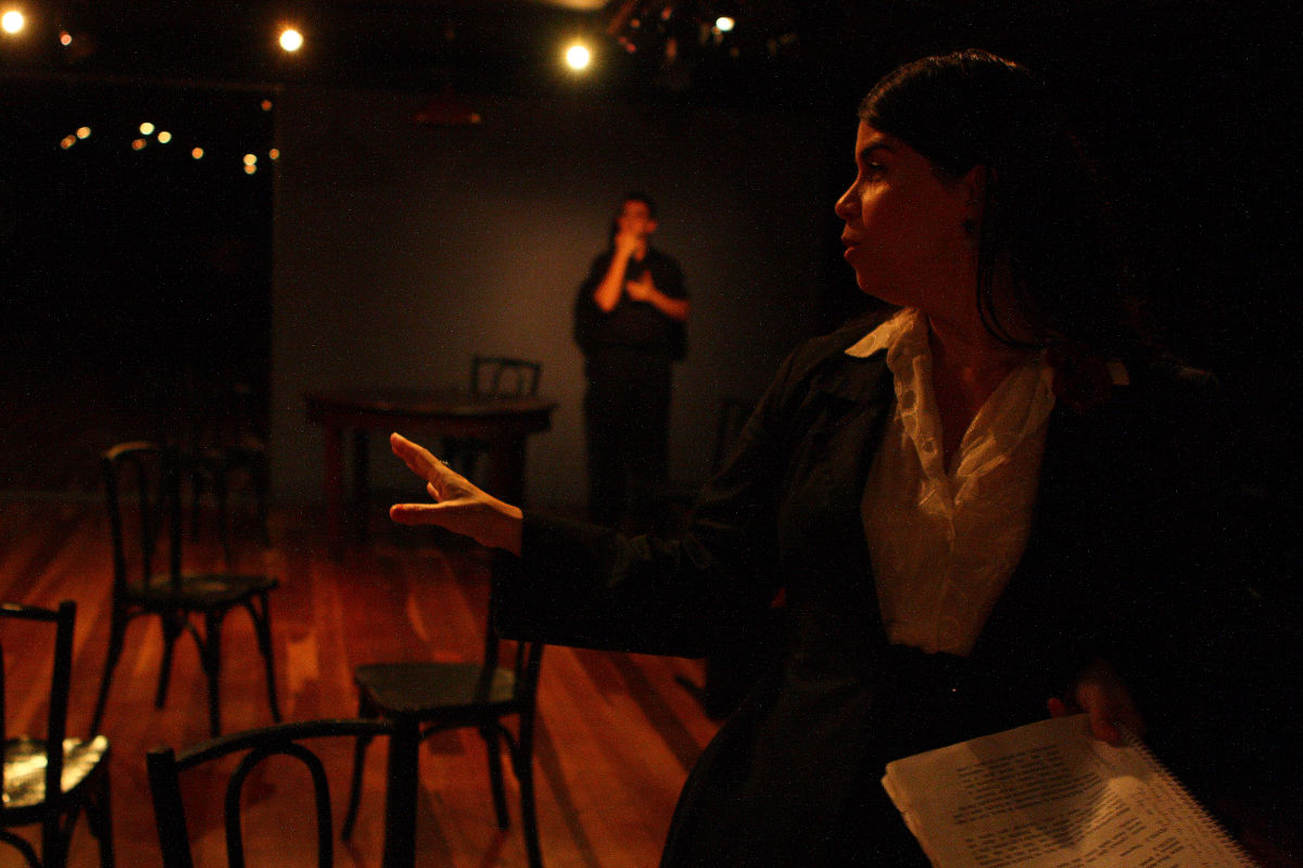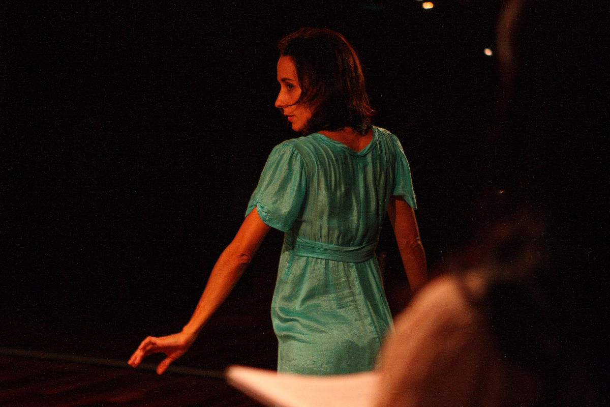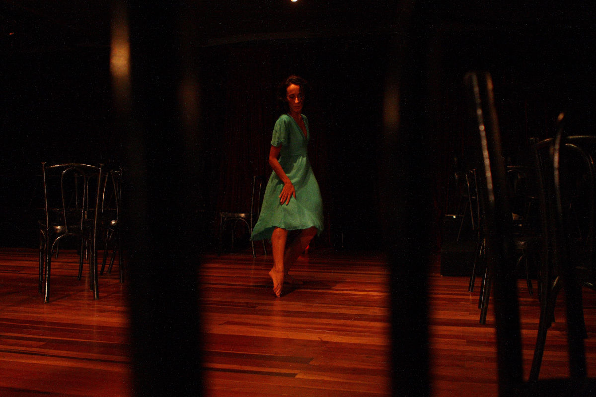 Em Três mulheres e um café: uma conferência dançada com o pensamento em Pina Bausch, Maria Alice Poppe dança de olhos fechados por um cenário composto por 30 cadeiras espalhadas pelo palco. Dividem a cena com ela, o ator Ricardo Duque e a conferecista Thereza Rocha, que assina a direção da montagem.